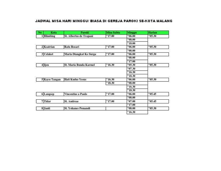 Homepage Official Website Paroki from parokikatedralmalang.org Jadwal misa minggu kapel paroki st. Jadwal misa paroki santa maria annuntiata. Jadwal misa (berlaku waktu setempat). Indonesia) gereja katolik paroki san inigo dirjodipuran jalan a.m sangaji no.27 gajahan surakarta 57115. 07.30 (gereja, gdg, bergamin & pskp st. 06.00 wib misa jumat harian 06.00 wib misa jumat i : (0765) 31238 jadual perayaan ekaristi: Ganjuran, sumbermulyo, bambanglipuro, bantul, 55764 yogyakarta.